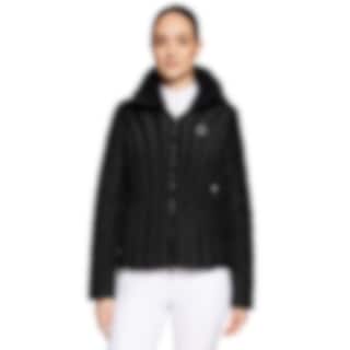 Courchevel Puffer från Samshield i svart är en elegant, figursydd damjacka designad för ryttare som vill ha en stilren och funktionell jacka för både vardagsbruk och ridning. Jackan har avtagbar huva, hel dragkedja och hög krage som skyddar mot kyla och vind. På bröstet sitter Samshield Swarovski® Crystal Intarsia-blazonet, medan huvan pryds av den broderade logotypen med kristalldetaljer, vilket ger en subtil men lyxig glans. Dubbel osynlig ficka framtill och magnet på huvan kombinerar funktion med stil.