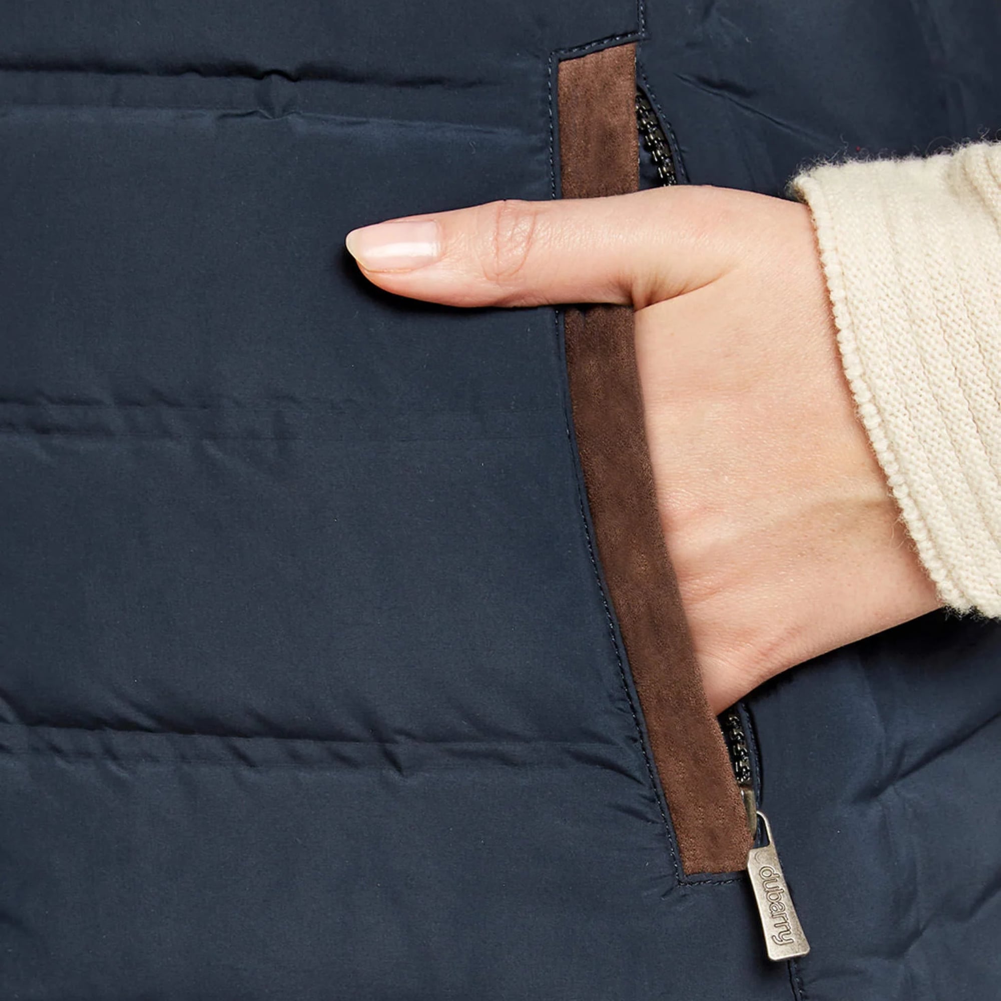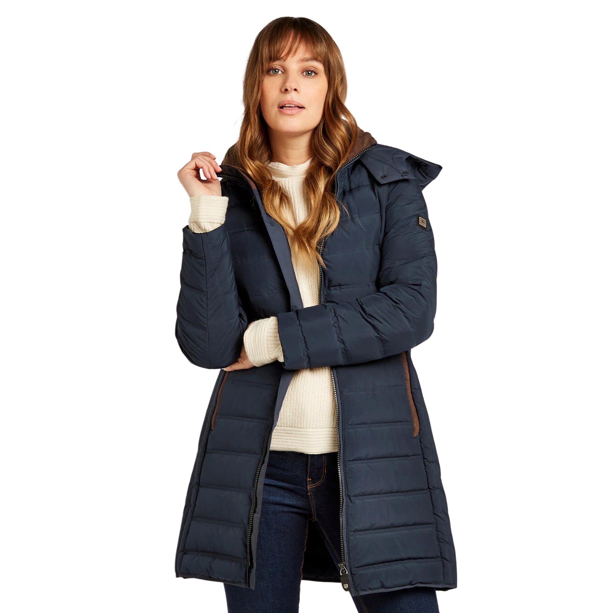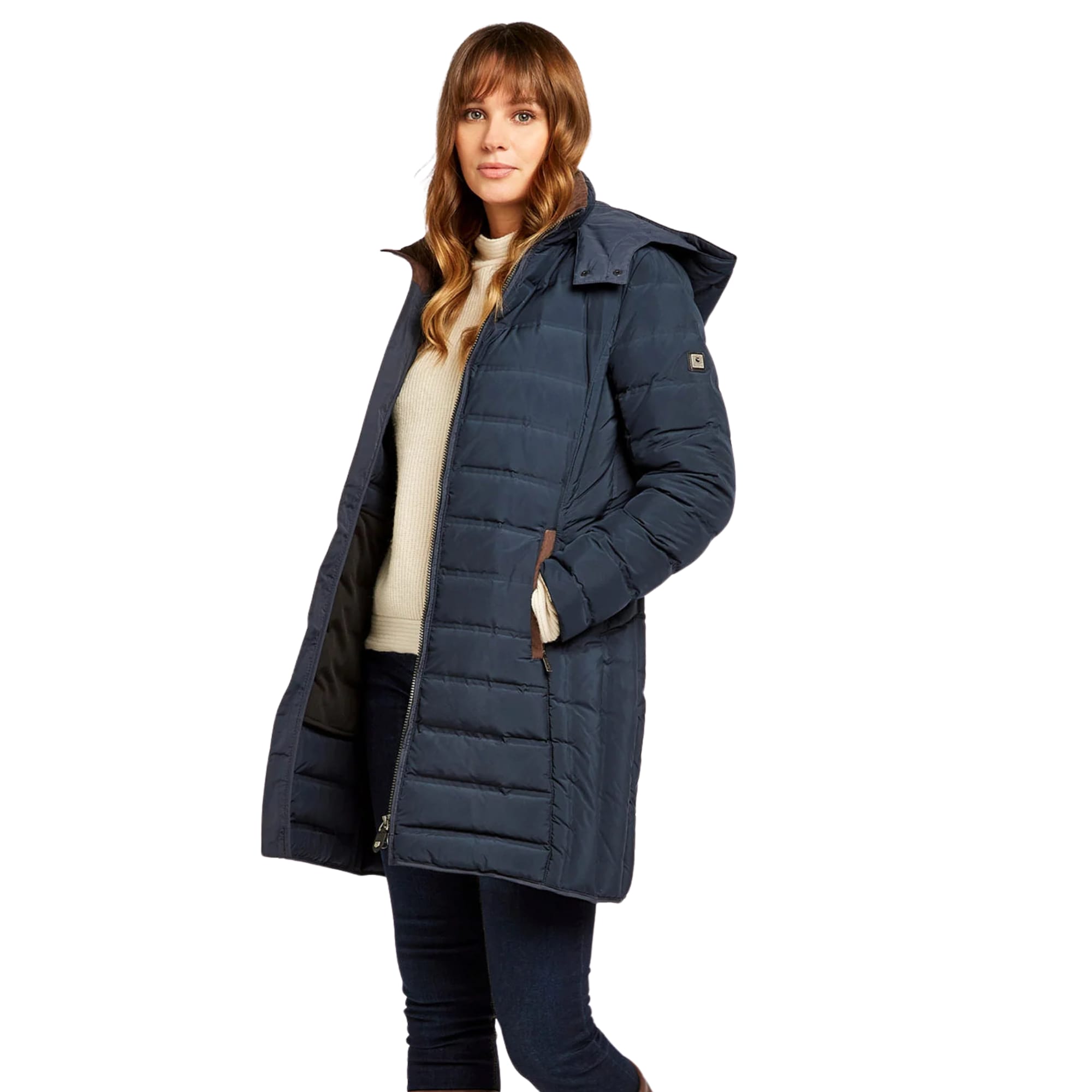 Dubarry Ballybrophy är en elegant och funktionell trekvartslång dunjacka som håller dig varm och bekväm under kalla höst- och vinterdagar. Med en fyllning av 90 % etiskt framtaget dun och 10 % fjädrar är jackan både lätt, mjuk och isolerande, perfekt för stallet, vardagen eller långa hundpromenader.