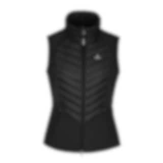Västen är designad med en smickrande feminin estetik, med sömlinjer och tonalsömmar. Med en kombination av softshell och vadderade paneler som möjliggör värme och flexibilitet är denna kroppsvärmare perfekt för aktiv utomhusbruk.
