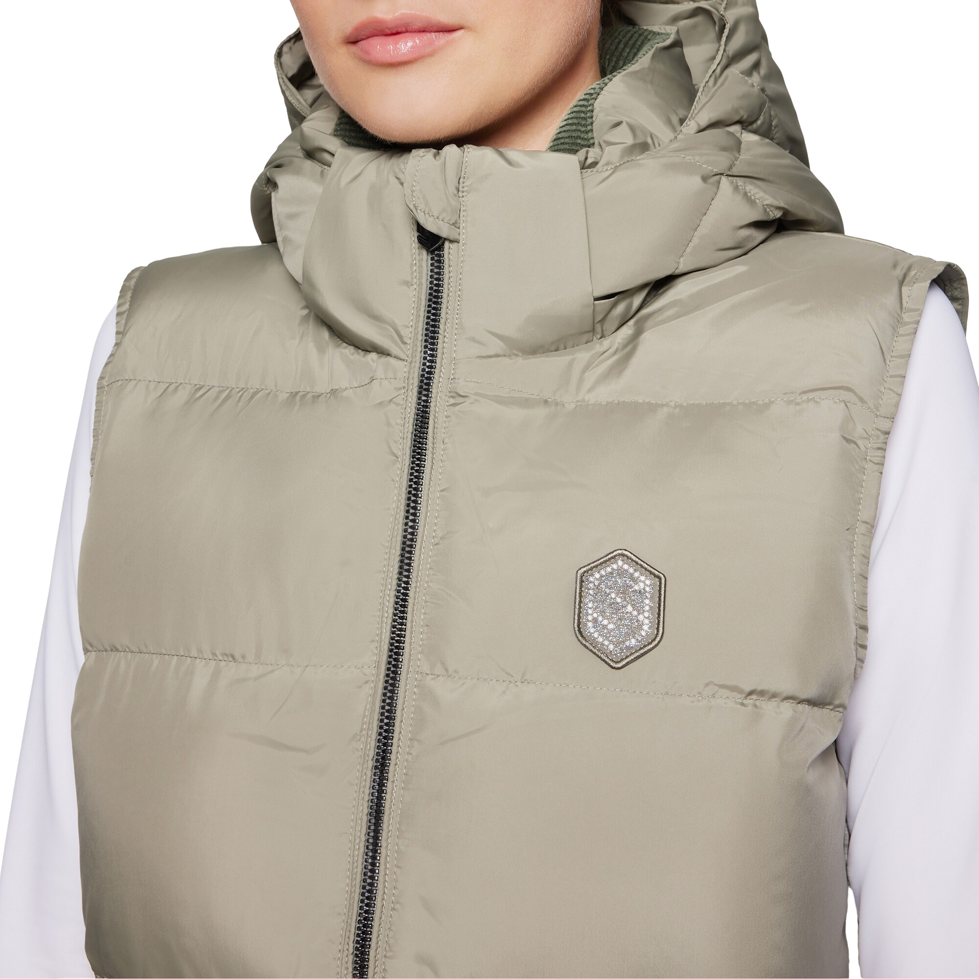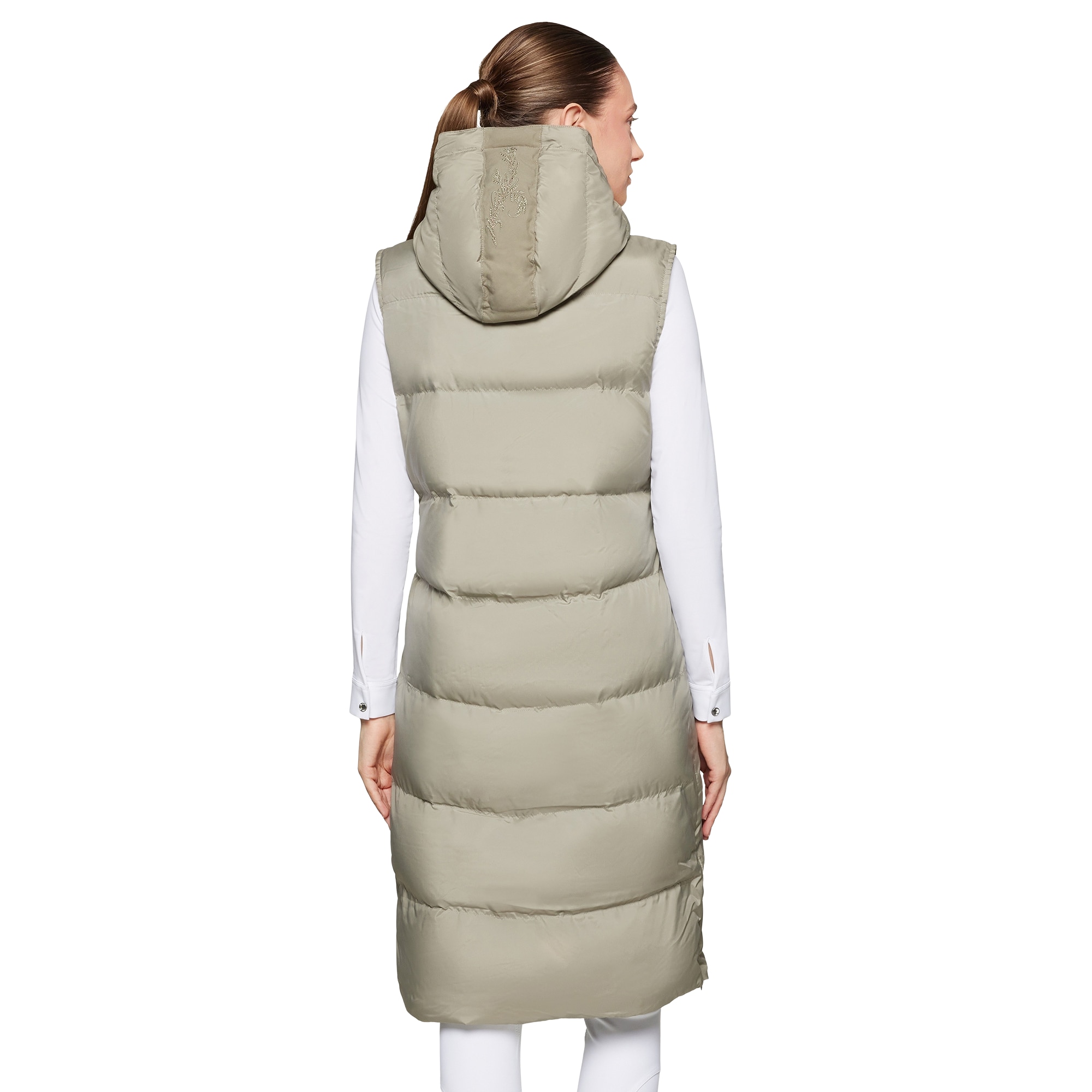 Elea Puffer i Patine från Samshield är en elegant och funktionell lång, ärmlös väst för ryttare som vill kombinera stil och prestanda. Västen har en sobert designad knälång passform med avtagbar huva, Samshield-blazon i Swarovski®-kristaller på framsidan samt dubbla fickor och smockdetalj på ryggen, vilket ger en lyxig och exklusiv finish. Full dragkedja och hög krage skapar både funktion och modern detalj.