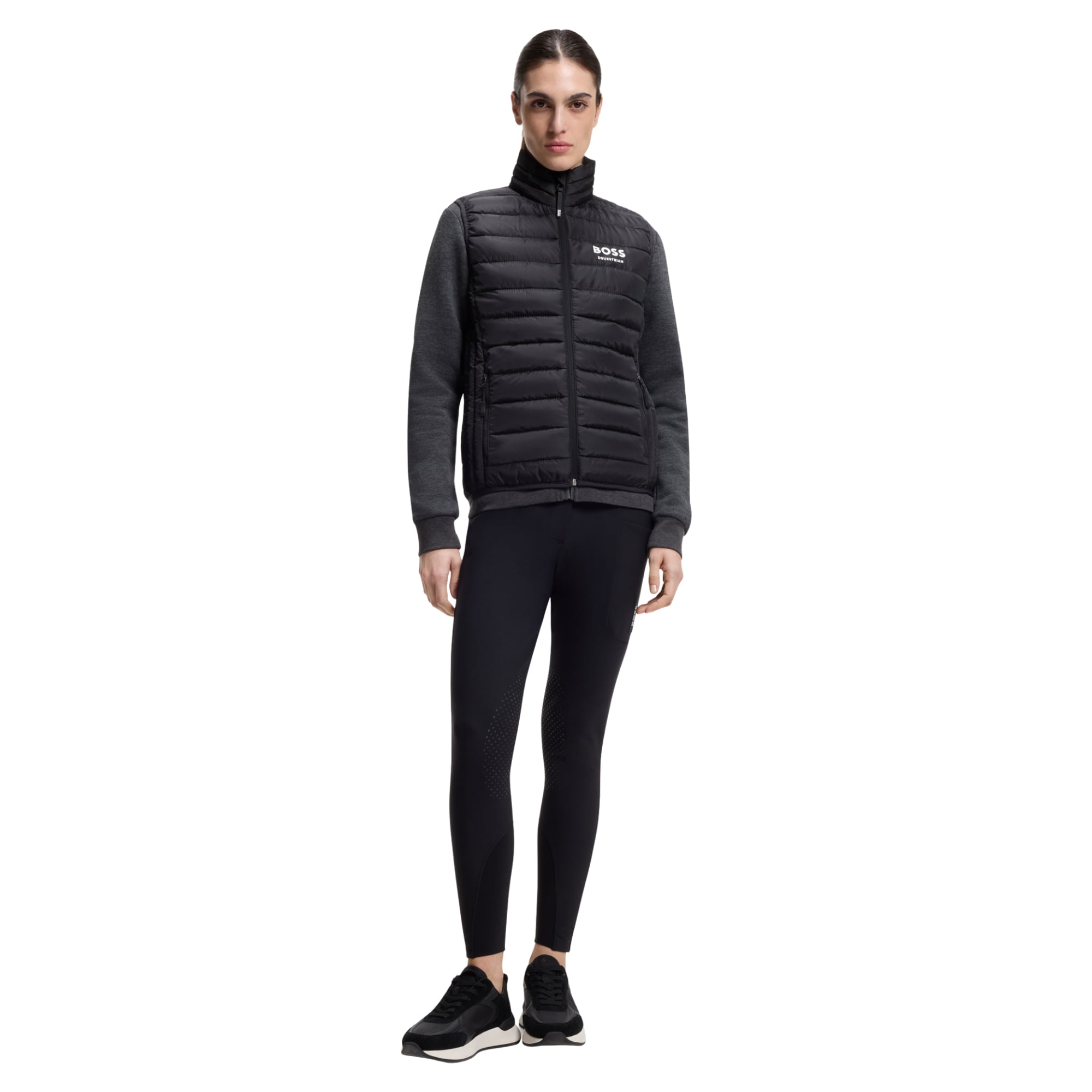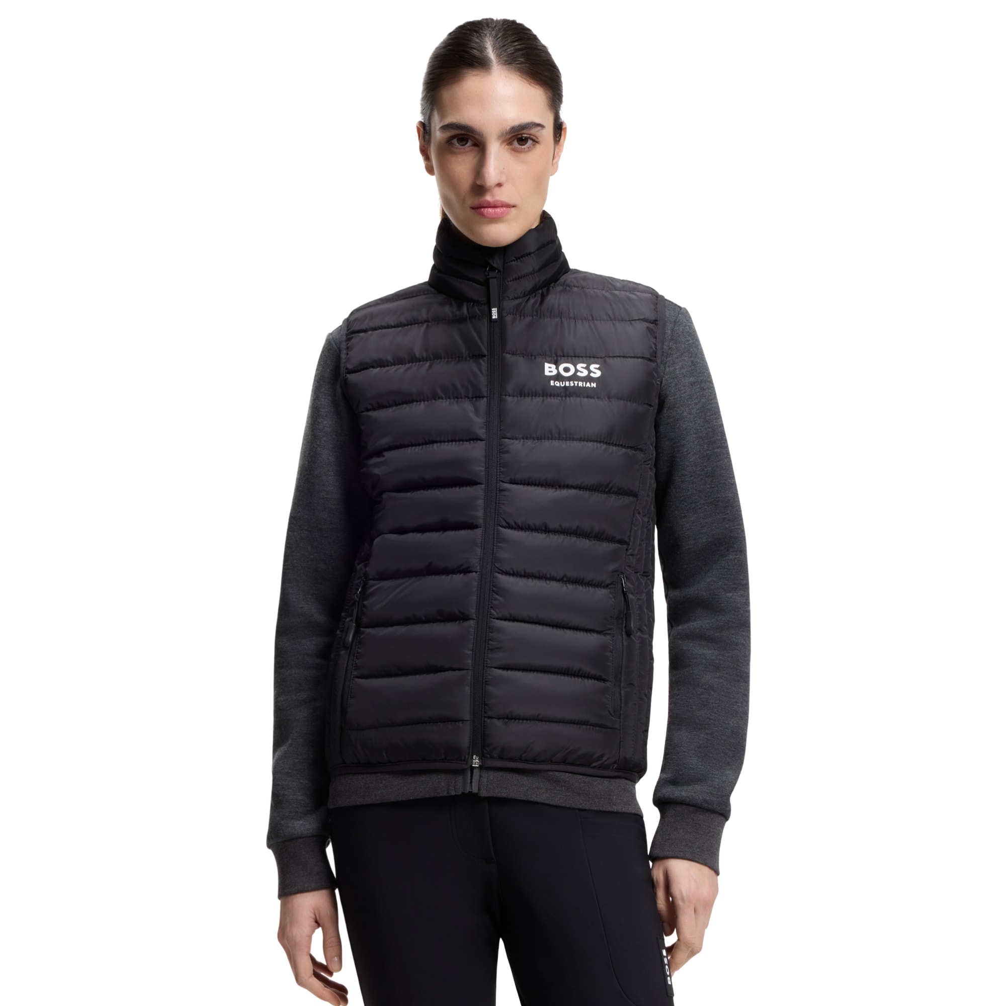 Västen är utrustad med praktiska sidofickor med dragkedja, en exklusiv signaturdragare i silikon med BOSS-logo, samt en stilren tryckt Boss Equestrian-logotyp på bröstet.