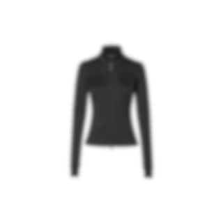 Tröjan har ett något figursytt snitt med ståkrage och långa ärmar med muddar, vilket ger både komfort och en sportig silhuett.