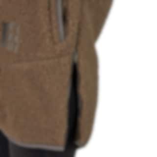 Pikeurs Sherpa fleecejacka är tillverkad i elastiskt bouclé-garn som lagrar värme på ett utmärkt sätt, samtidigt som den tunna och följsamma innerfodringen ger skön komfort. Den lediga passformen och den något längre längden över låret gör jackan perfekt både i stallet och till vardags.