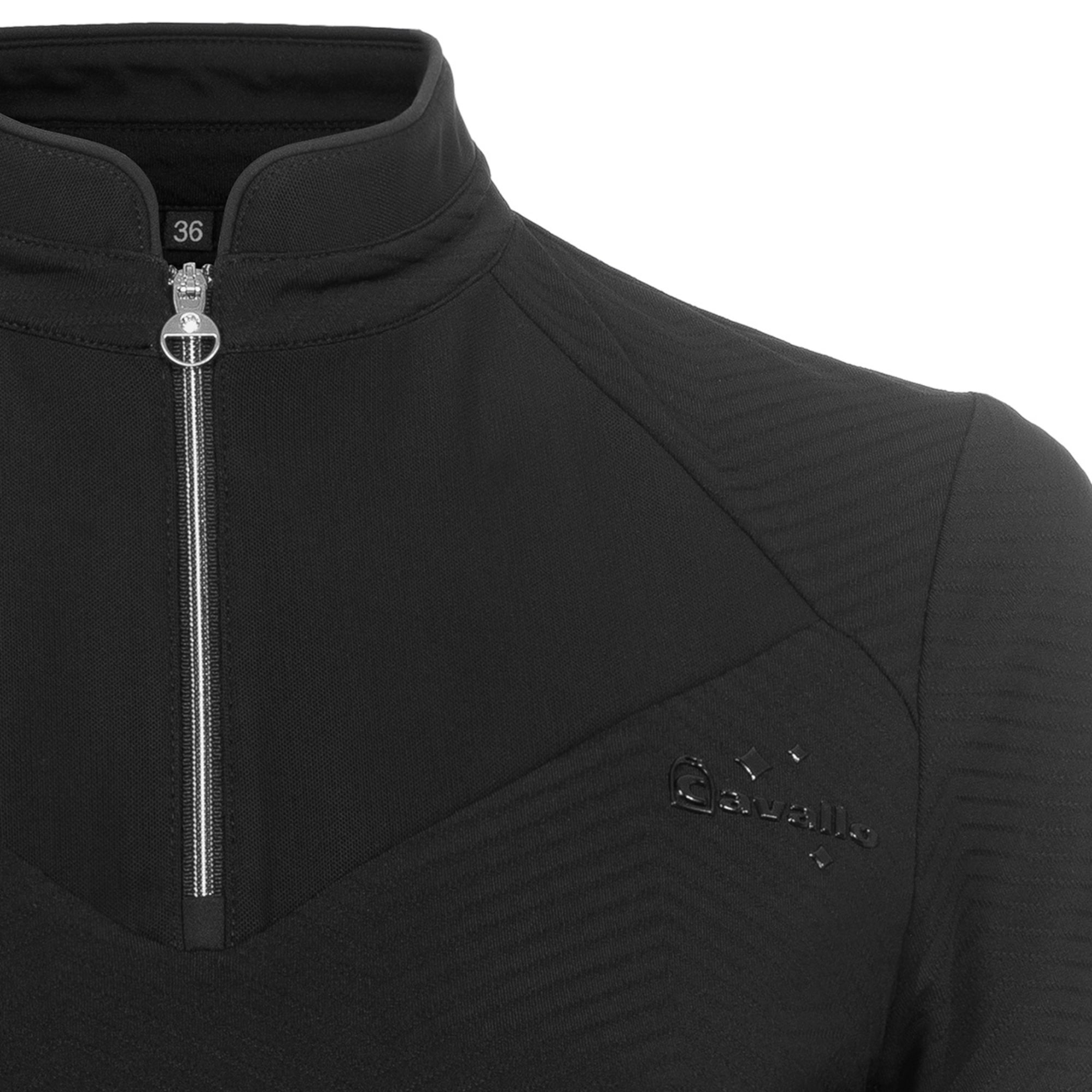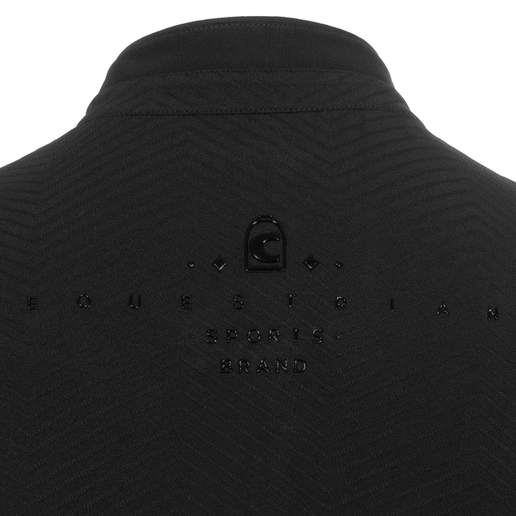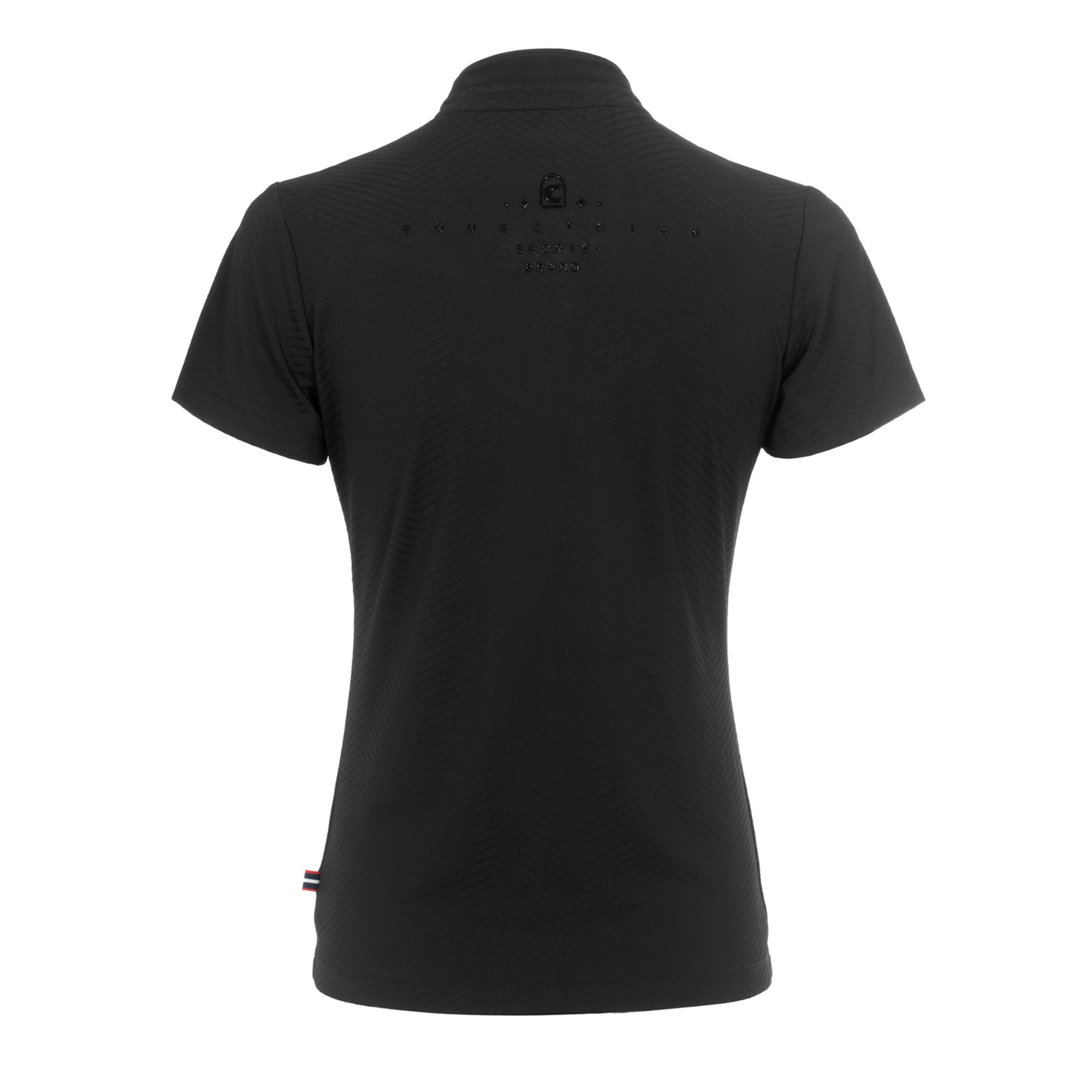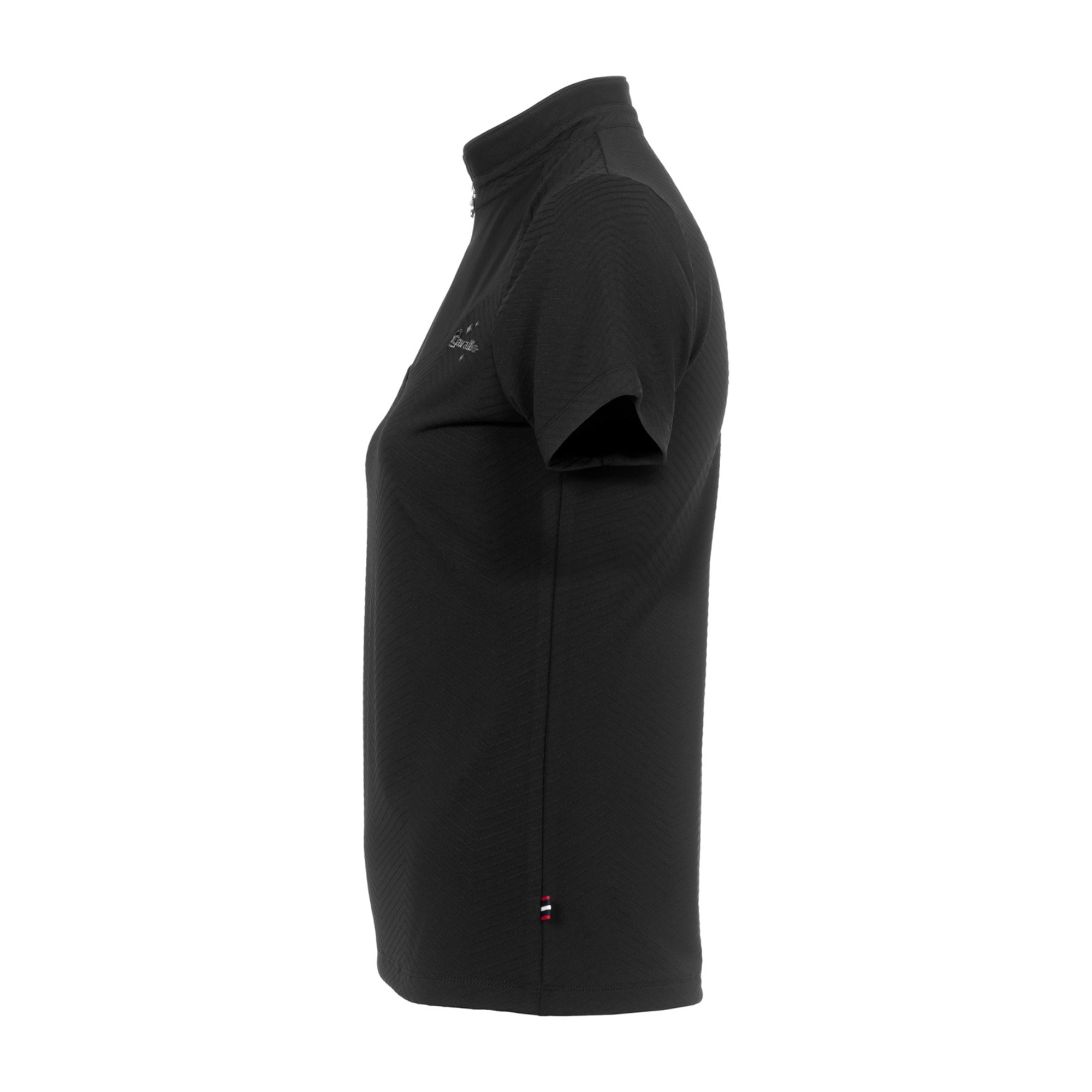 Cavalbritny T-Shirt från Cavallo är en kortärmad träningströja med ståkrage, tillverkad i ett funktionellt material. Modellen har en kort dragkedja framtill med Cavallo-hänge dekorerat med kristallsten.