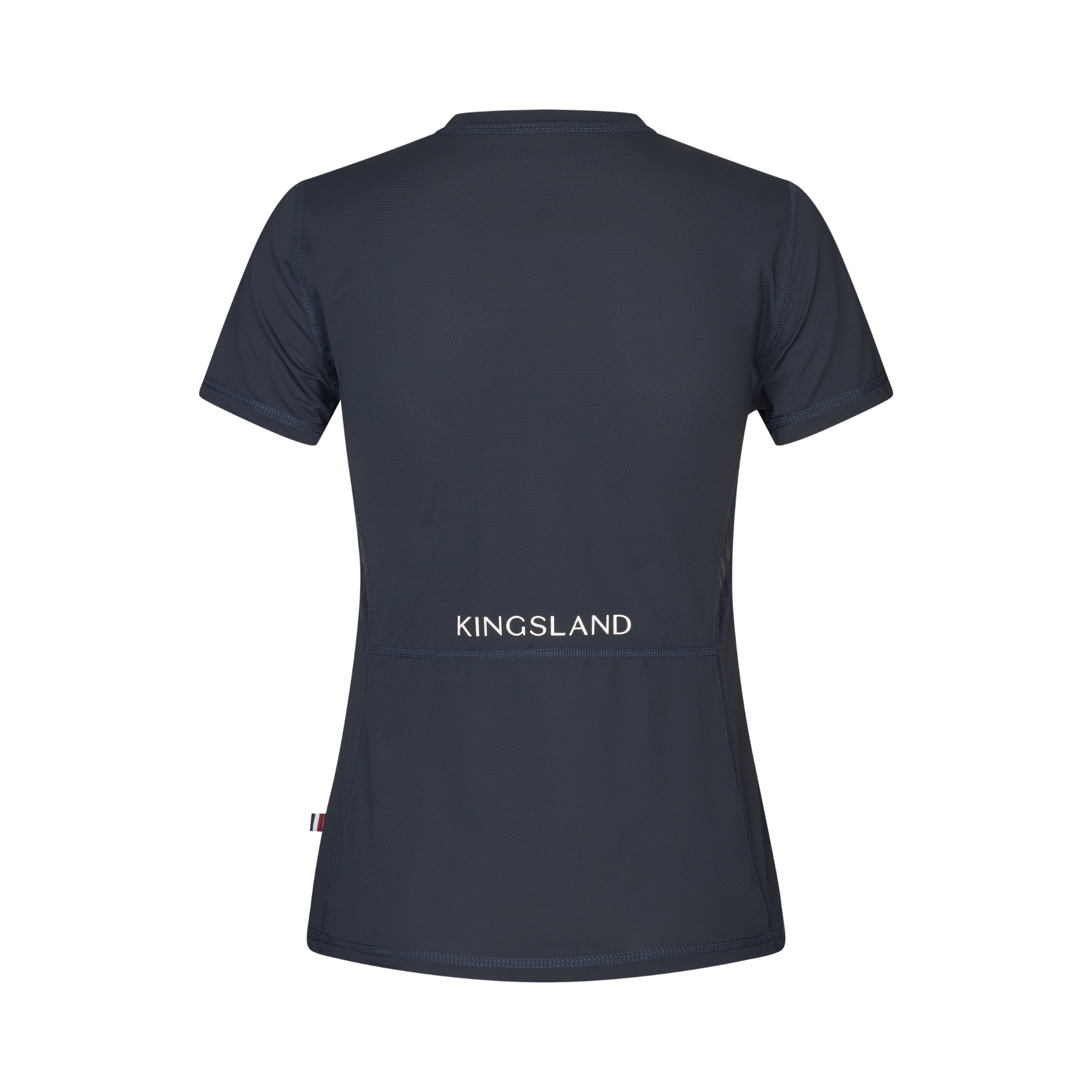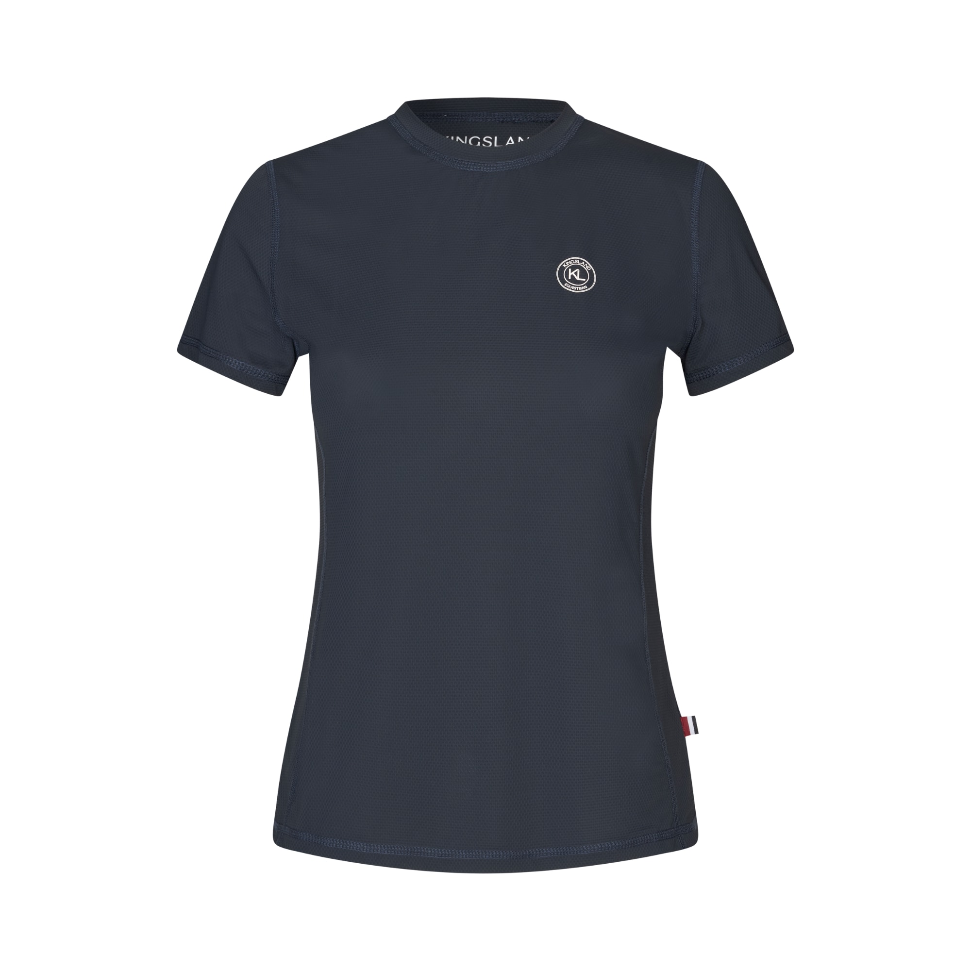 Kingsland KLLeona Technical T-shirt är en bekväm och följsam ridtröja som känns luftig och sitter bra under ridpass och stalljobb, dekorerad med Kinglands logga.