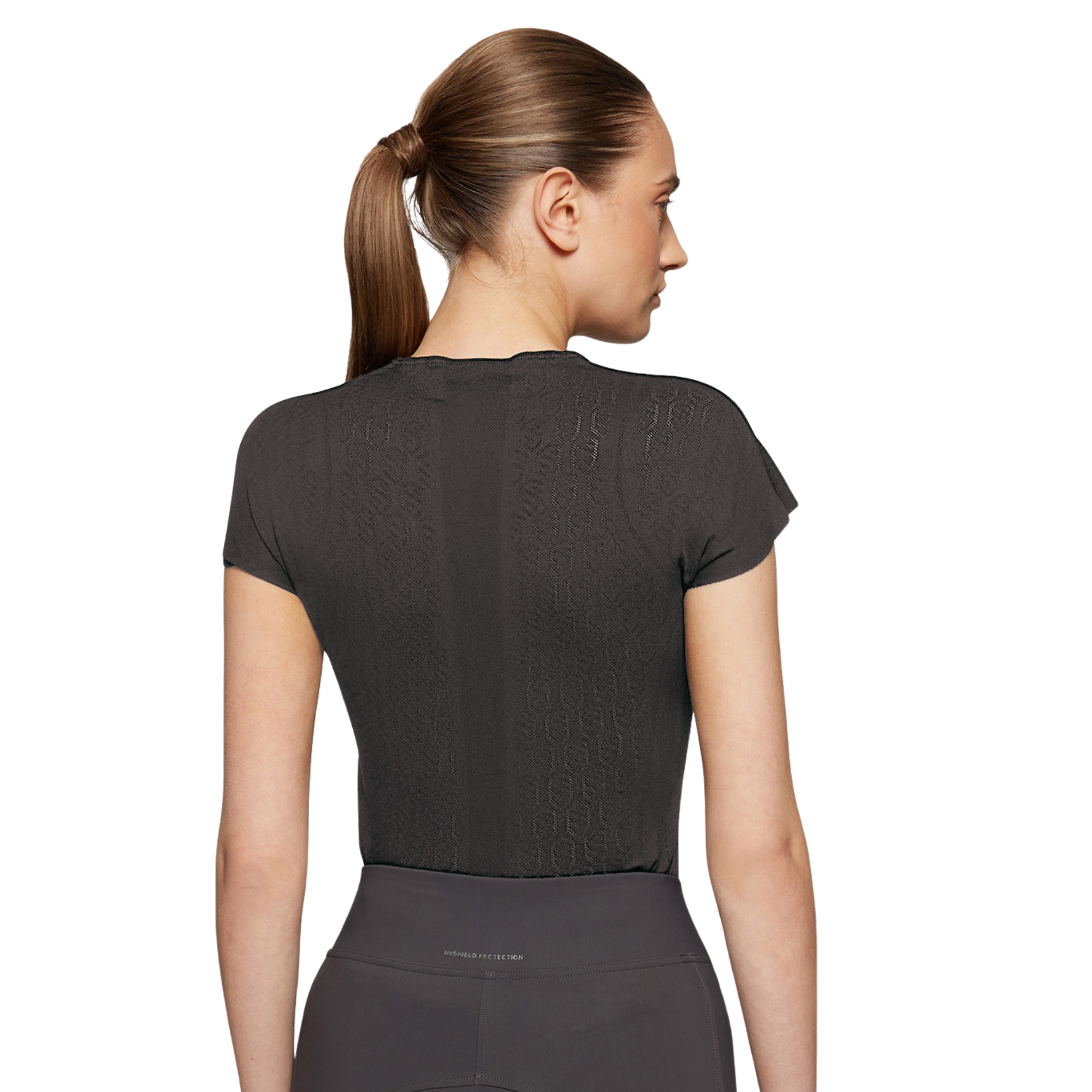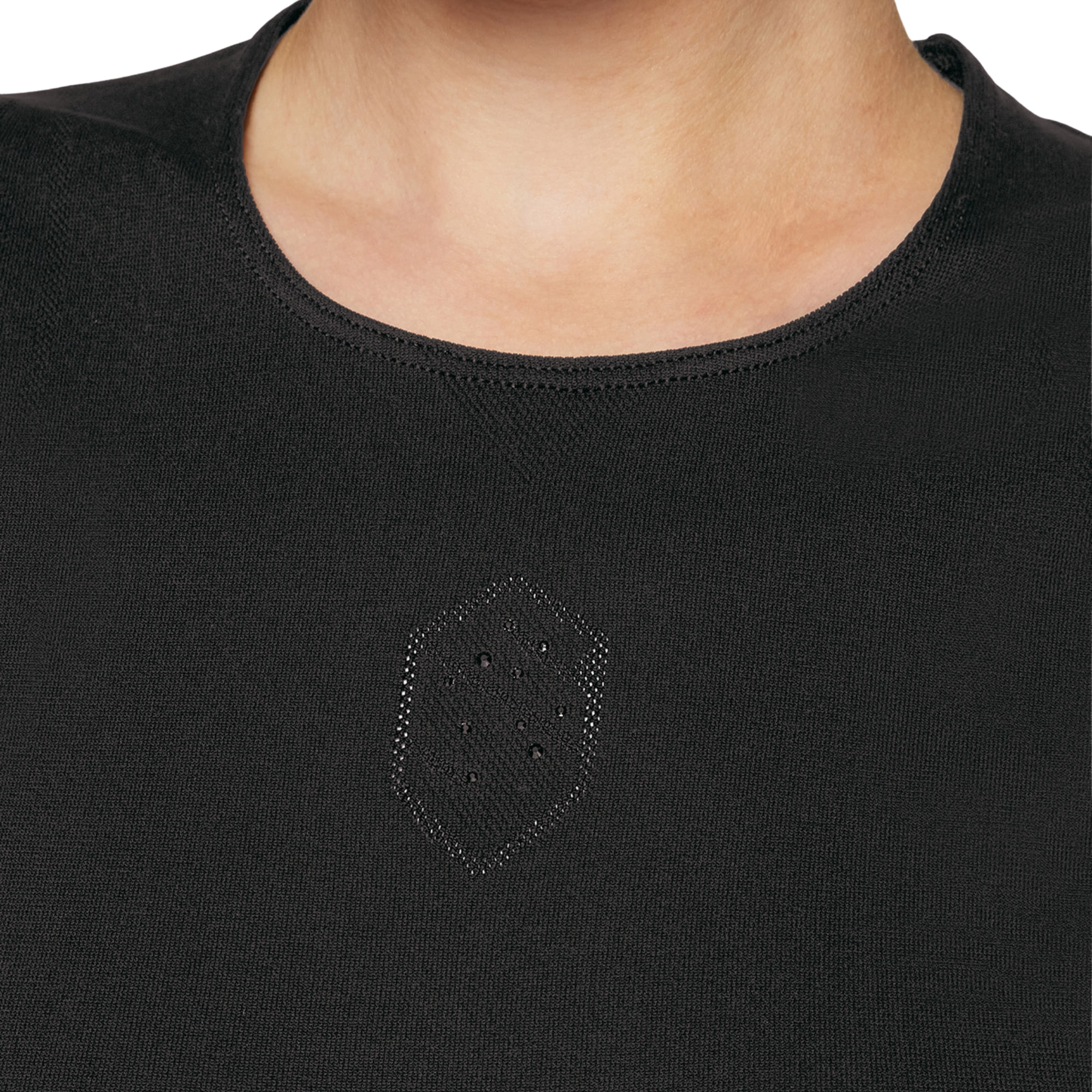 Denna t-shirt är tillverkad i ett stretchigt material som formar sig efter kroppen och ger en smickrande passform med full rörelsefrihet. De korta ärmarna ger ett luftigt intryck, medan designen lyfts av en perforerad Samshield-blazon med Swarovski-kristaller framtill och en stickad logotyp baktill.