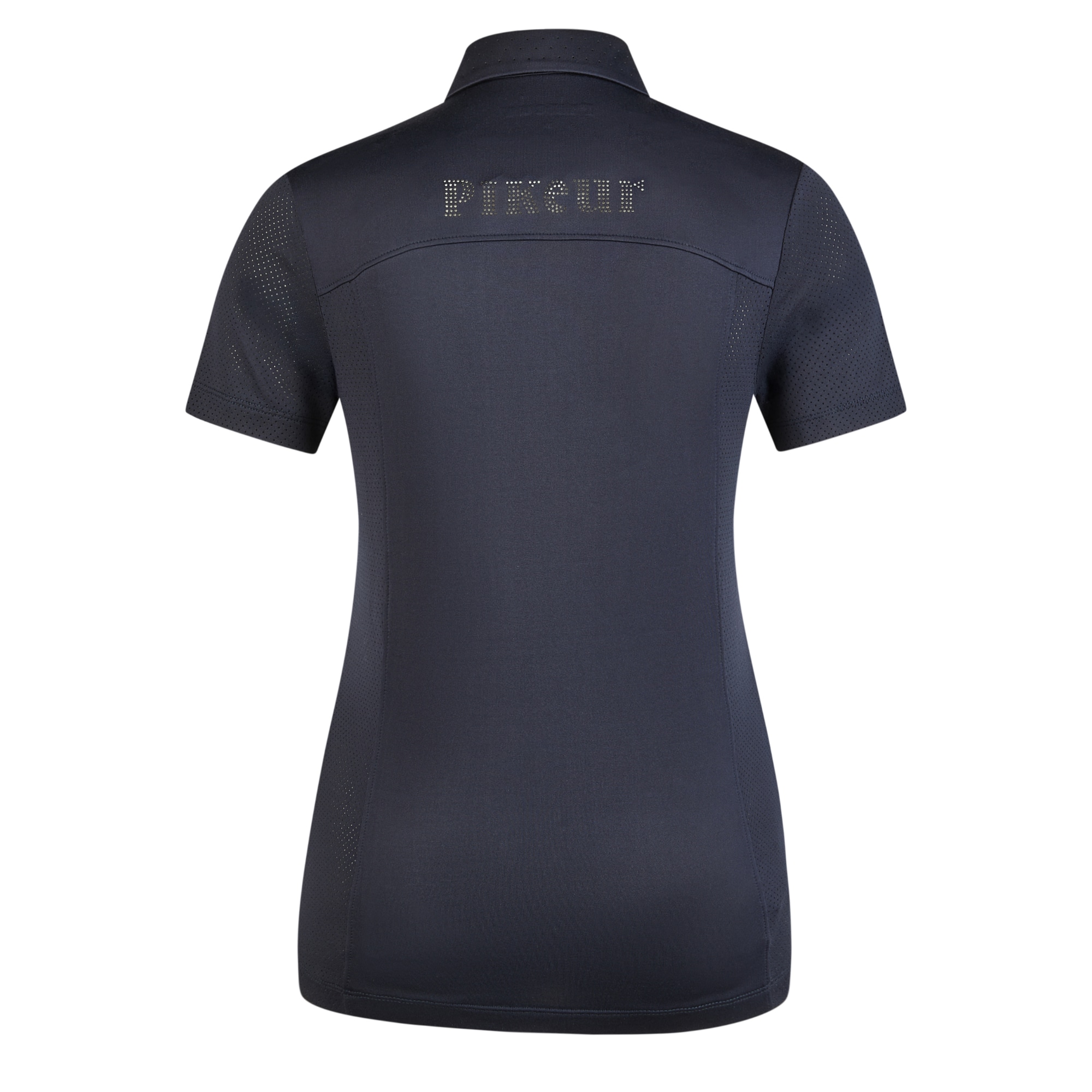 Tröjan har en pikékrage med dold knappslå, där en vit Pikeur-text ger en diskret kontrast. På ärmen finns en tryckt Pikeur-logga i vit, och baktill sitter en Pikeur-logga i laserskuren design. Ridtröjan är behandlat med Livinguard-teknologi, vilket ger en varaktig antibakteriell och luktneutraliserande effekt, även vid frekvent användning.