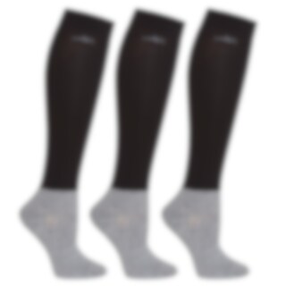 Supersköna stövelstrumpor från Schockemöhle Sports! 3-pack med svarta knähöga strumpor med grå förstärkt fot.