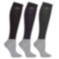 Supersköna stövelstrumpor från Schockemöhle Sports! 3-pack med ett par marin, ett par svarta och ett par grå knähöga strumpor.