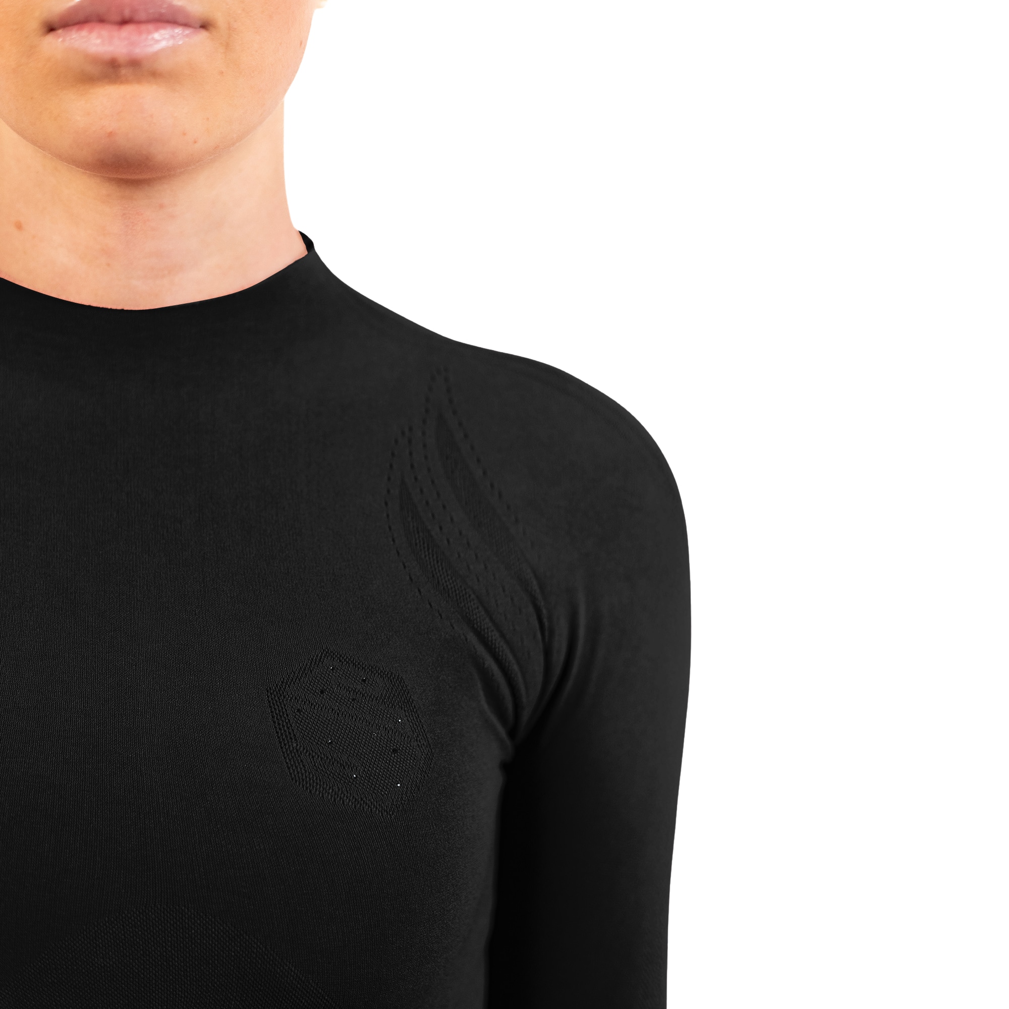 - Svart långärmad träningströja med sömlös design och något hög krage