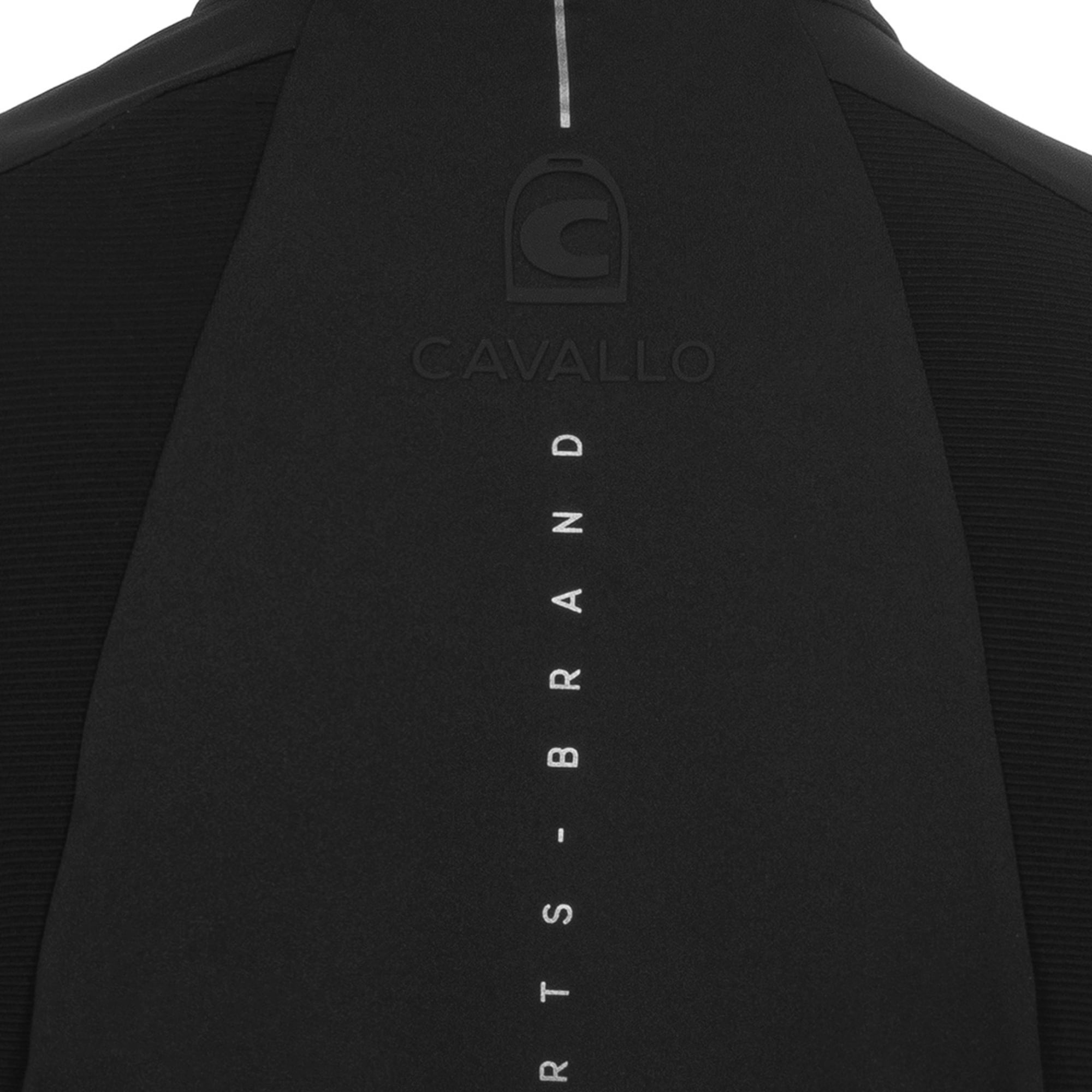 På vänster bröst sitter ett svart Cavallo stigbygeltryck, på vänster ärmslut återfinns en diskret Cavallo-logotyp och ryggen pryds av ett större Cavallo artwork i mitten samt dekorativa sömmar med kontrastmaterial. Insidan är mjukt borstad för en extra behaglig känsla mot huden.