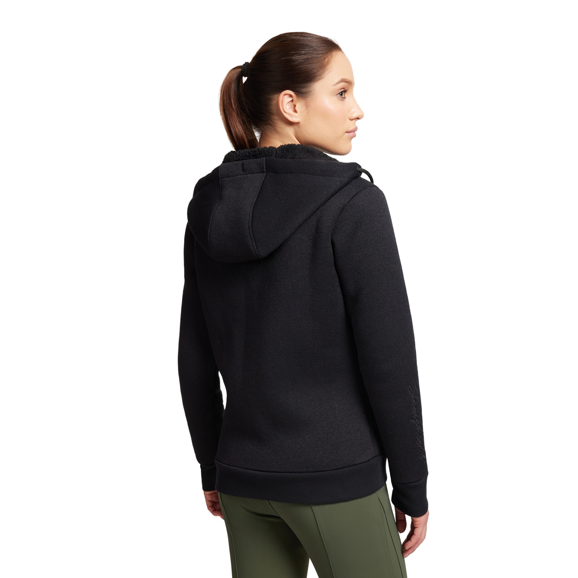 Fouzia Sweatshirt från Samshield i svart är en sportig hoodie med hög funktion och stilrena detaljer. Designad för ryttare som vill ha en kombination av sporty look och subtila kristalldekorer, med dragkedja, huva och ståkrage som skyddar mot vind och kyla. På bröstet sitter Samshield Crystal Intarsia-blazonet, medan den övre delen av ryggen pryds av Samshield-logotypen i brodyr, vilket ger plagget en exklusiv känsla.