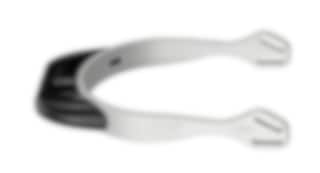 Silverfärgad fairRider sporre med svart top från Sprenger. fairRider är en innovativ sporre som har en vidare anläggningsyta än klassiska sporren.