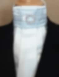 En stilren vit plastrong med ett snyggt band i vitt och silver, samt en dekorativ strassbrosch, från ShowQuest!