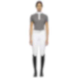 Denna gråa fina tävlingsskjorta är gjord i ett stretchigt material, har tre knappar framtill samt en grå Cavalleria Toscana brodyr på den vita polokragen. Team Jersey Tävlingspolo har även en CT logotyp i svart och rött på bröstet.