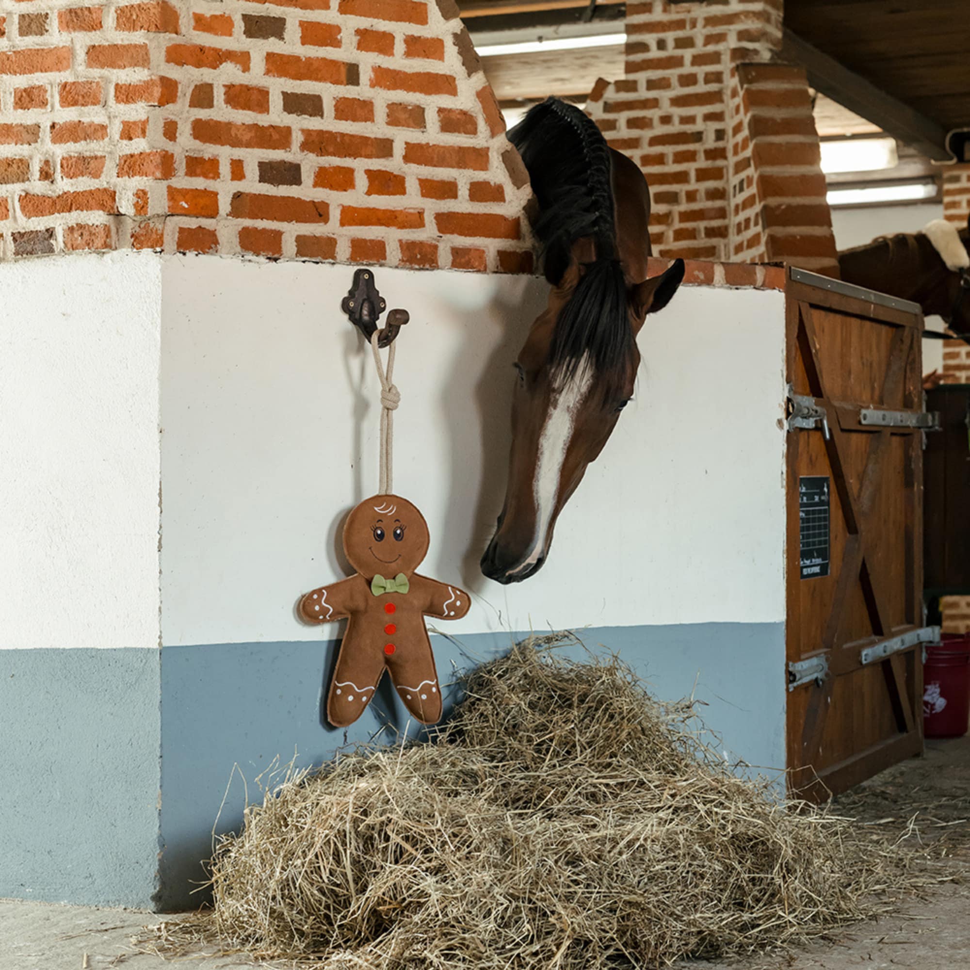 Hästleksak Pepparkaksgubbe är en söt och festlig dekoration till boxen. Perfekt som julklapp till både häst och ryttare och sprider härlig julstämning i stallet.