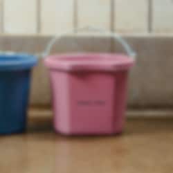 Stall- och vattenhink i en fin mattrosa färg, 12 liter med flat sida för enklare upphängning.