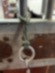 Praktiskt upphängningsband med ring. 20 cm repögla plus metallring. Kan vara olika färg.